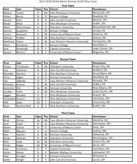 I know that the awards season for the 2023 season has long passed, but apparently there is something called the Ohio College Soccer Association that just announced a DIII All Ohio team. It basically looks like the all conference team if the OAC and NCAC stopped poaching each other's teams and merged into one big mega-conference. Why not? There are a lot of great teams in Ohio and I'm all for giving kids more recognition. Plus, SimpleCoach's Purple Raiders got two players on the first team!
